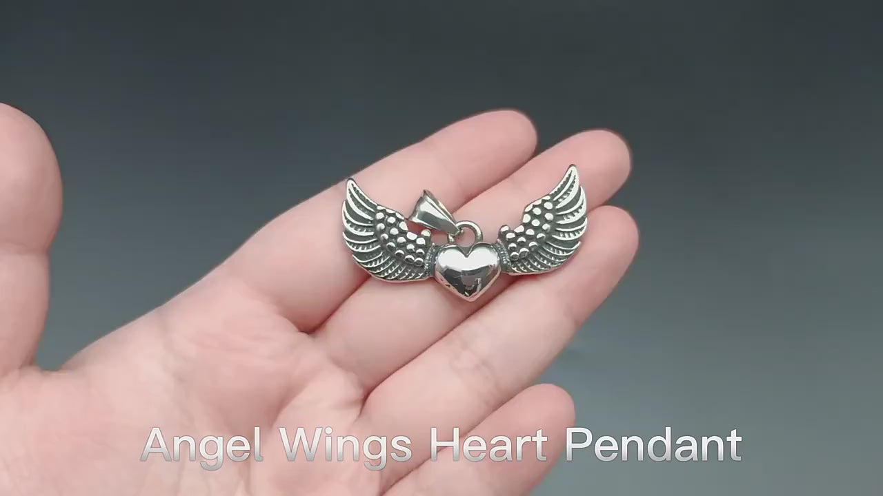 Polished silver-tone heart necklace with winged detailing. Crafted from high-quality stainless steel with a clean, balanced silhouette and lightweight feel. Designed for everyday wear with subtle gothic and Y2K influence.